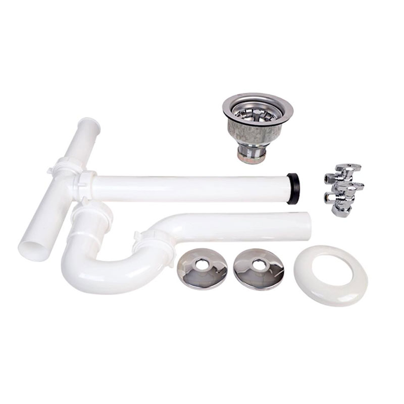 Kitchen#7 1-1-1/2in PVC End Disposal Waste, P-Trap and White Escutcheon 1-Basket Strainers 2-Compression Angle Stop Valves 2-Chrome 5/8in Escutcheons